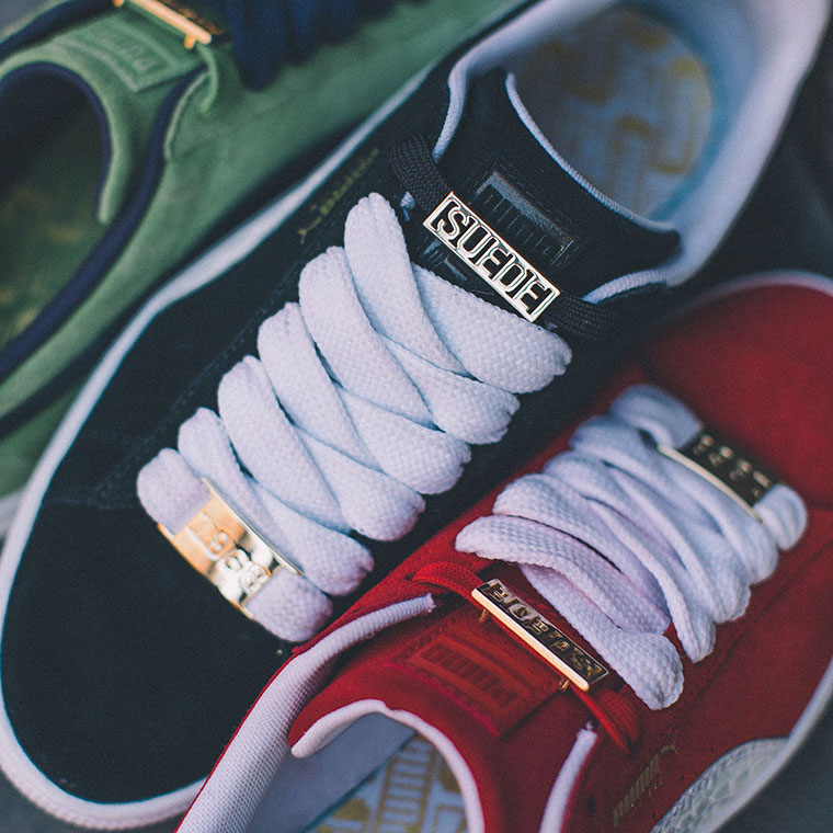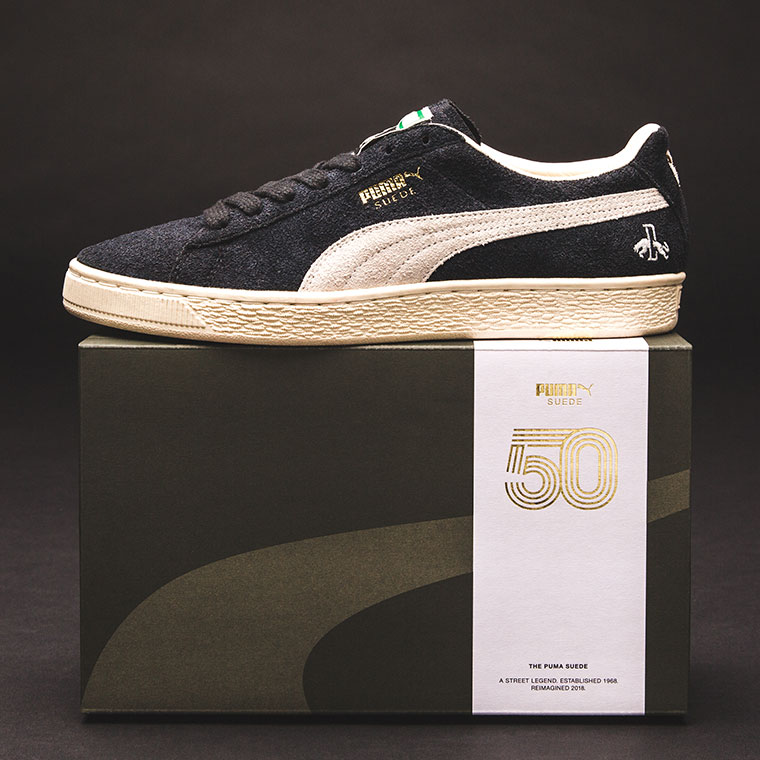 Puma celebra este aniversario a través del lanzamiento de diferentes líneas de Suede: desde su estética tradicional, así como también, con intervenciones que le dan un toque diferente a cada línea. En 2018, Suede se une fuerzas con sus leyendas de la cultura pop compañeros, desde Hello Kitty a Tommie Smith. También se realizaron colaboraciones con: Karl Lagerfeld, MAC Cosmetics, Big Sean, entre otros.