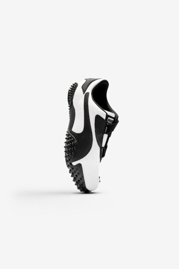 Reimaginada como una segunda piel, Mostro Perf debuta con combinaciones monocromáticas en cuero perforado premium. Mezclando bloques de color blanco y negro en la parte superior, la silueta adopta un esquema de colores limpios, y presenta sus características distintivas: su suela con pinchos y su versátil cierre con correa.
