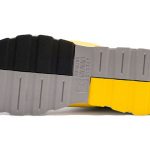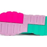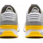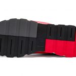 Las inserciones acolchadas de color rojo y amarillo inspiradas en los botones de la consola del juego se muestran en la entresuela, mientras que la suela tiene un diseño moderno que bloquea el color. Los logotipos R-System están presentes en la lengua y la suela.