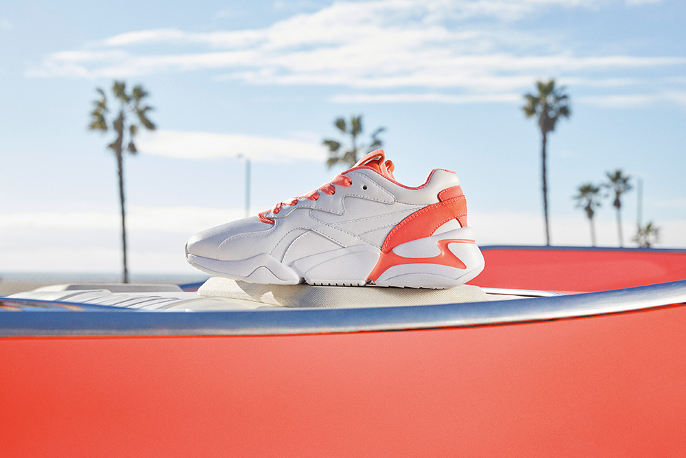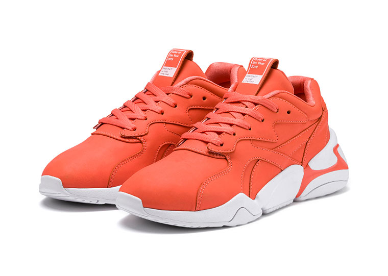 Fusionando un diseño de los años 90 con colores fuertes, las zapatillas combinan una base sólida con un cuerpo femenino que contiene tela, gamuza y superposiciones de cuero. Por un lado, las Nova X Pantone Wn se caracterizan por tener una parte superior de color Living Coral y una suela de goma gruesa en color blanco.