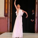 En este contexto, la danza emergió una vez más como una expresión de resistencia, esperanza y encuentro. El éxito de las comedias musicales en el cine constituyó un hecho novedoso y popular que significó para los espectadores momentos excepcionales de placer. La aparición de estrellas como Fred Astaire y Ginger Rogers da cuenta del protagonismo alcanzado por este tipo de films. La colección es un intento de revivir el glamour y la elegancia de esos años dorados de Hollywood. El escenario para esta presentación es la sala de lectura de la antigua Biblioteca Nacional, convertida hoy en la Sala Williams del Centro Nacional de la Música. La elección de este espacio, se remonta a la apertura de mi tienda en San Telmo hace once años. Su magnifica escala y la atmósfera producida por la luz del mediodía