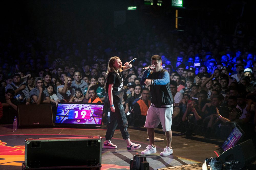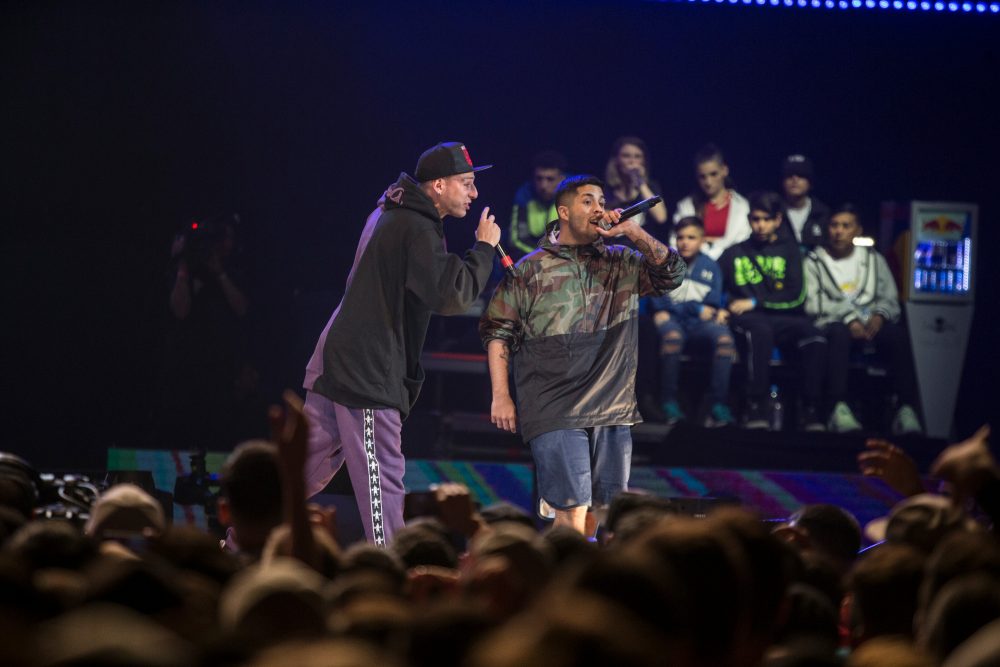 MC Wolf and MC Roma perform during the Red Bull Batalla de los Gallos National Final in Buenos Aires, Argentina on October 20, 2019 // Gustavo Cherro/Red Bull Content Pool // AP-21XNFW47D1W11 // Usage for editorial use only //