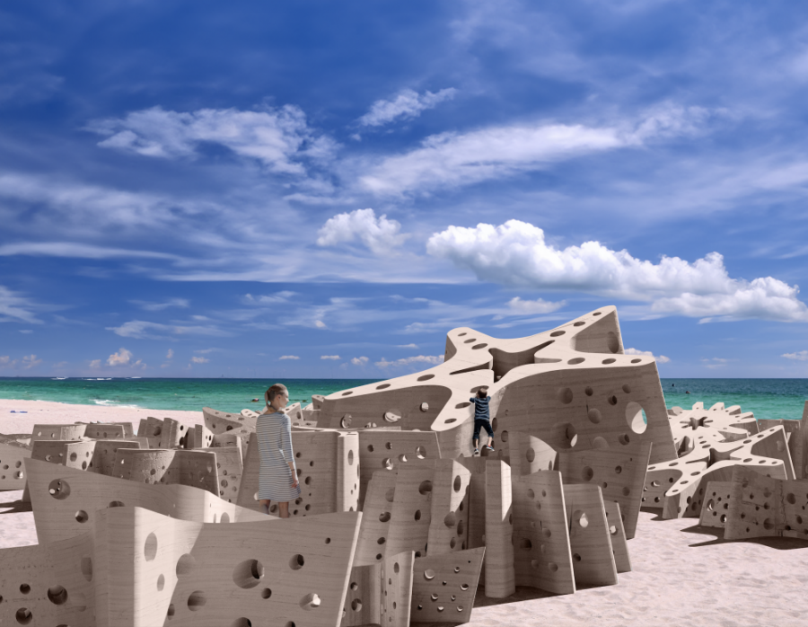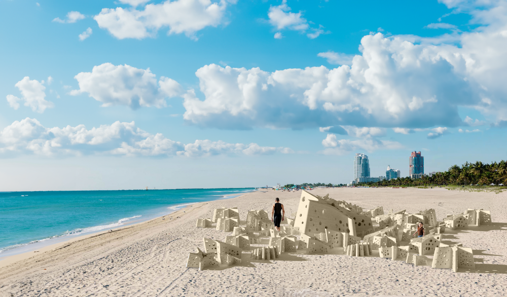 Render del Miami Reef Star, una instalación escultórica a gran escala de Carlos Betancourt presentada en el Miami Art Week en Miami Beach.