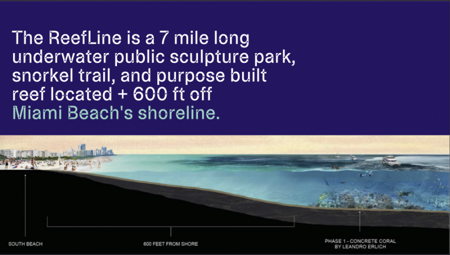 The ReefLine, un nuevo e importante parque público de esculturas submarinas de 11 kilómetros de largo, se complace en presentar Desarrollada por BlueLab Preservation Society y apoyada por $5 millones en fondos públicos de la Ciudad de Miami Beach a través del Arts & Culture G.O. Bond, ReefLine contará con obras ambientalmente atractivas de artistas y diseñadores aclamados, y proporcionará un hábitat crítico para los organismos de arrecifes en peligro de extinción, promoviendo la biodiversidad y mejorando la resiliencia costera.