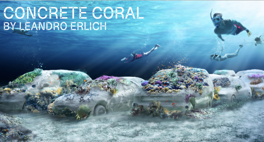 Para el parque subacuático primero se instalará Concrete Coral de Leandro Erlich en la primavera de 2025 (no está colocada bajo el agua aún), y la fase 2 será esta escultura Miami Reef Star, que se sumergirá más adelante.