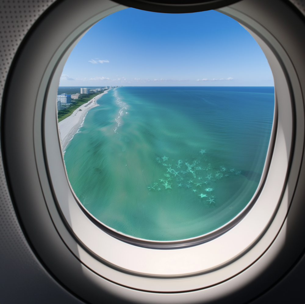 Render del Miami Reef Star y eventual ubicación bajo el agua de la obra del artista Carlos Betancourt , desde el aire como parte del ReefLIne.