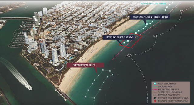El proyecto ReefLine es realizado a través de una asociación entre BlueLab Preservation Society y la ciudad de Miami Beach, y dirigido por su fundadora, la creadora Ximena Caminos, ReefLine está utilizando el arte como una herramienta de cambio para revitalizar la costa de la ciudad. Esta obra será un nuevo parque público de esculturas submarinas de 11 kilómetros de largo. El Miami Reef Star, una instalación escultórica a gran escala de Carlos Betancourt en la costa de Mid-Beach durante la Miami Art Week, que estará en exhibición al público desde el martes 3 de diciembre hasta el domingo 8 de diciembre.Esta es la segunda etapa después de la genial presentación de la obra del artista argentino Leandro Erlich llamada Concrete Coral.