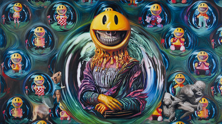 Ron English es uno de nuestros artistas favoritos que también tiene una obsesión con el smile y su remix con una mueca de dientes y esqueleto en todos sus obras de arte.