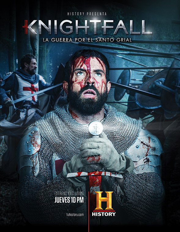 El jueves 22 de febrero se estrena en exclusiva en HISTORY para toda América Latina la aclamada serie dramática KNIGHTFALL: La Guerra por el Santo Grial. Producida por A+E Studios, en asociación con The Combine de Jeremy Renner, Island Pictures y Midnight Radio, la primera temporada de esta serie de diez episodios transporta a los televidentes hasta la Edad Media y los lleva hacia el interior del régimen de la época y el conflicto armado que enfrentaron los Caballeros Templarios, la poderosa, rica y misteriosa orden militar a la cual se le confió la protección de las reliquias más preciadas de la Cristiandad, como el Santo Grial y valiosos secretos que podían llegar a destruir a la misma Iglesia.