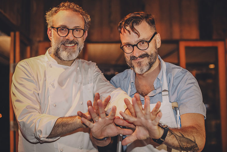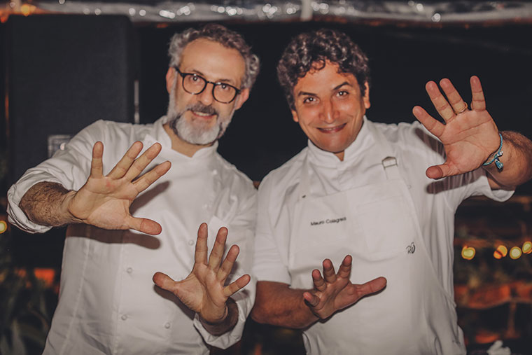 4 de las 10 manos, El chef italiano Massimo Bottura (Osteria Francescana) junto al chef argentino Mauro Colagreco (Mirazur).
