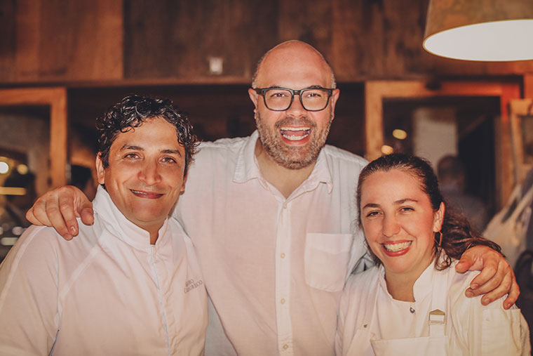 Los chefs Mauro Colagreco (Mirazur), el chef venezolano Carlos Garcia y la chef Narda Lepes (Narda Comedor).