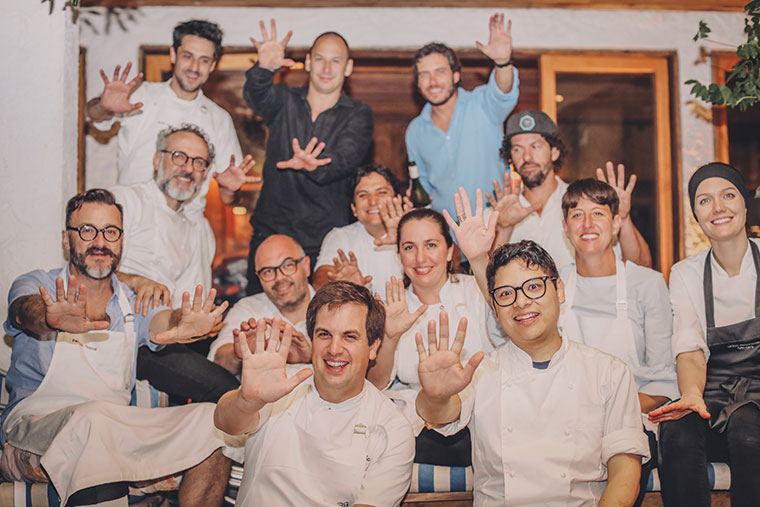 Fue un gran reencuentro. Después de un año, las 10 Manos volvieron a encontrarse. Este largo abrazo de amigos no podía tener un escenario extraño. El reencuentro fue en la casa de Fernando Trocca, en el Mostrador Santa Teresita, José Ignacio, Uruguay, testigo de mesa larga, risas y muchos momentos compartidos. Y como retomar este camino merecía una gran fiesta, sumaron manos queridas. La bienvenida estuvo a cargo de dos cocineros del lugar: Gastón Yelicich y Federico Desseno quienes junto a Inés De los Santos, que por esta vez reemplazó a Tato Giovanonni, tuvieron la bandera de largada con los aperitivos. Fernando Trocca (con ayuda de su equipo), Narda Lepes, Mauro Colagreco, Guido Tassi y Germán Martitegui prepararon el menú con productos locales, de mar y de tierra. Hubo una sorpresa más: dos de los platos estuvieron a cargo de Massimo Bottura, quien se sumo a este 10 manos, con una Insalata di mare y un plato homenaje a New York. El viticultor Sebastián Zuccardi y Pablo Rivero se encargó de acompañar cada paso con vinos especialmente seleccionados para esta fiesta por Bodega Zuccardi Valle de Uco (Zuccardi Wines).