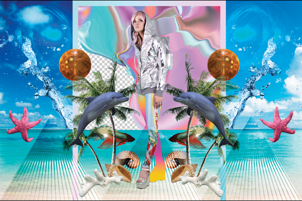 El término apareció por primera vez en 2011 en Twitter cuando el DJ de Brooklyn Lil twitteó haber soñado con una campera de cuero “seapunk” con caracoles en lugar de tachas. En el reciente año pasado, cantantes como Rihanna y Azealia Banks lo popularizaron tanto en su estilo personal, como en algunos de sus videoclips y presentaciones. Basado principalmente en la estética del Windows 95 e Internet de la década de los 90’, el seapunk también se caracteriza por el uso de imágenes con motivos acuáticos, prendas technicolor, cabelleras azules, verdes y rosas, pirámides, columnas grecoromanas y luces de neón. Y fue la fuente de inspiración remix para la dupla Corti – Attwell.