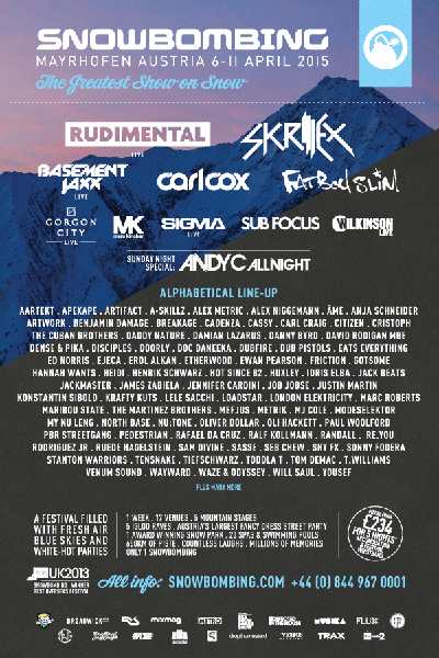 El line-up para el Snowbombing 2015 que se llevará a cabo desde el 6 hasta el 11 de abril en Mayrhofen (Austria) ha sido revelado!