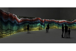 La pieza a gran escala titulado » Movimiento de tierras » representa el proceso de formación de la Tierra a través de los siglos hasta e incluyendo al Antropoceno, la era geológica actual definido por los efectos de las actividades humanas sobre los ecosistemas de la Tierra.