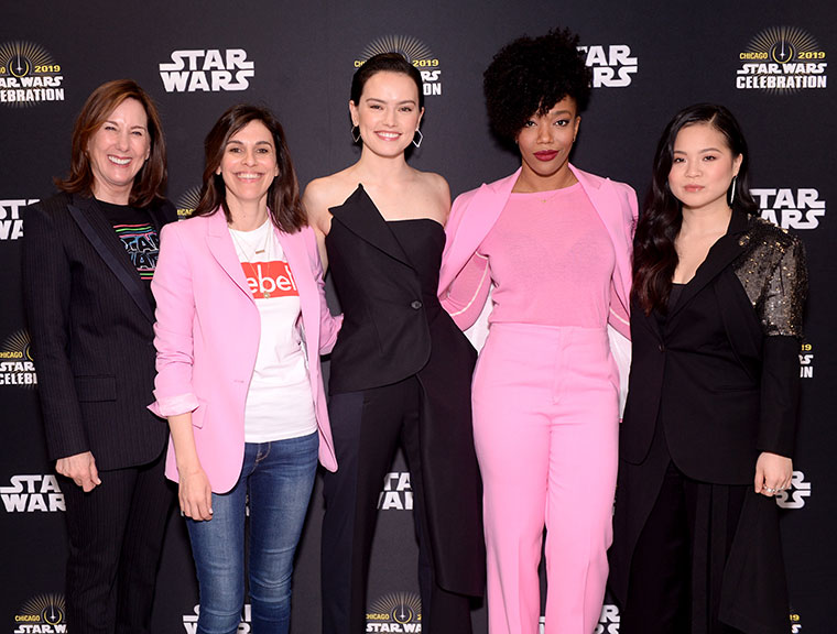 775326691SH00331_Star_Wars_ 15/04/2019 Leave a comment Las productoras Kathleen Kennedy, Michelle Rejwan y las actrices Daisy Ridley (Rey), Naomi Ackie (Jannah) y Kelly Marie Tran (Rose Tico)