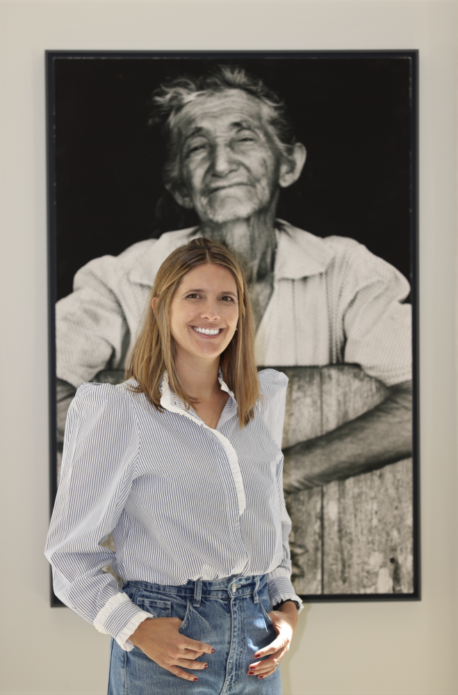 Ana Lovaglio Balbo frente al retrato del libro de Luchadoras por el fotografo brasileño Sebastiao Salgado.