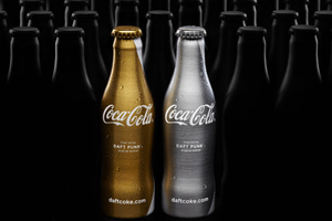 Los cascos utilizados por el dúo francés Daft Punk inspiraron una nueva co-lab para Coca Cola que presenta dos nuevas botellitas limited edition en oro y plata empacadas en caja de colección, disponibles únicamente en la exclusiva Colette en París. Aplausos!