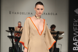 Evangelina Bomparola revolucionó la pasarela del BAF con la presentación de su nueva colección S/S 2011-2012, donde los ponchos en nude y naranja fueron los verdaderos protagonistas.