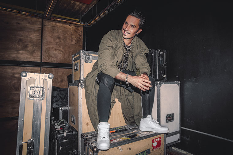 capa verde militar de JT x JT, t-shirt animal print vintage, short y calzas NIKE Sportswear, zapatillas NIKE Air Force 1 ´07 mid blancas de cuero