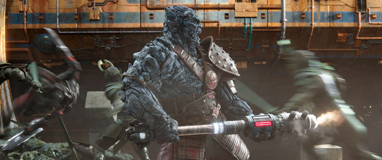 Sí, porque todo la película está dedicada a los diseños originales de Jack Kirby (unos de los dibujantes de comics famosos) y su trabajos muy brillantes con colores y formas muy ácidos. Y hasta tiene un mix de Art Deco, Bauhaus y una pizca ochentosa.