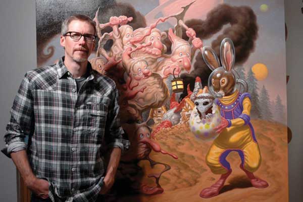 El plan era unir trazo renacentista con el delirio abyecto de la cultura pop americana. Y salió demasiado bien. Todd Schorr es el visir supremo del pop surrealista americano, con lienzos de monstruos gigantes, clientes coleccionistas como Leo di Caprio, excitación por el detalle y un nuevo libro, “American Surreal”, que recopila lo mejor de casi 30 años de pintura y obvio que nos encanta. Sobredosis de estímulos pop desde Beverly Hills.