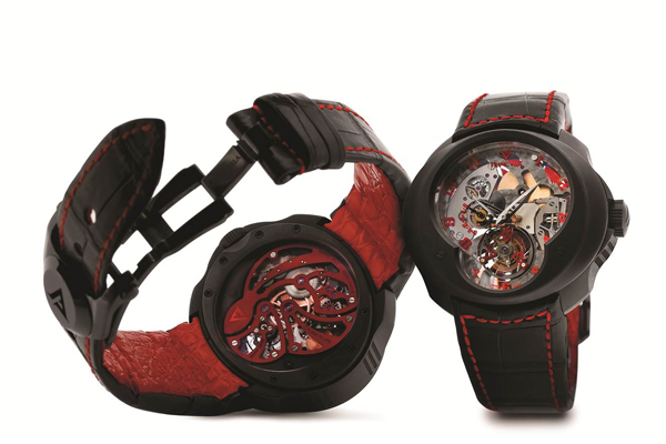 Para esta oportunidad el visionario e innovador del segmento de la Alta Relojería, continuando con su inquietud de unir diseño y arte, trae a la Argentina una de sus más innovadoras creaciones: el contemporáneo Tourbillon SuperLigero FVa Nº 6, estéticamente inspirado en el arte contemporáneo. En el interior de la extraordinaria pieza late un mecanismo tourbillon cuyos puentes y jaula han sido realizados por primera vez en la Alta Relojería en una aleación de litio y aluminio denominada Lightnium, un nuevo material de baja densidad y alta resistencia usado en la ingeniería aeronáutica que aporta al guardatiempos una ligereza y resistencia incomparables.