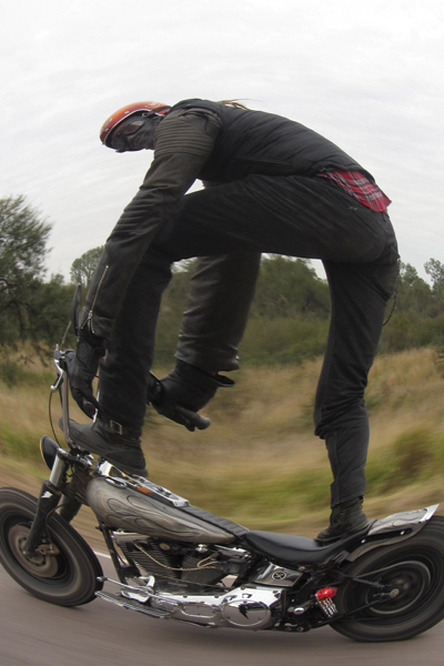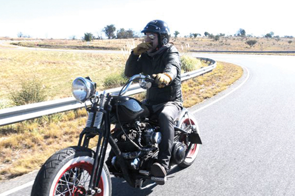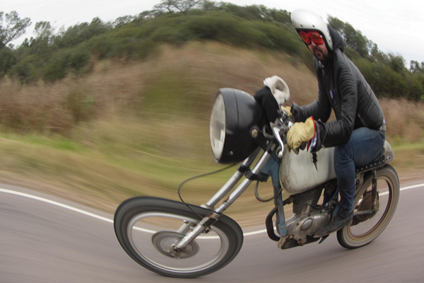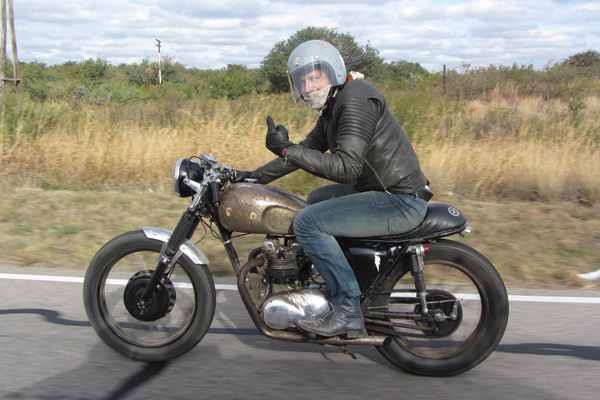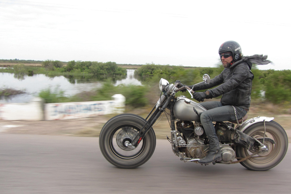 NO ES GULLIVER, ES MATIAS BRACUTO CON SU HARLEY “MINI” BOB