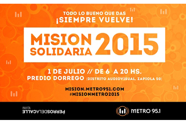 El miércoles 1 de julio, Radio Metro realizará, por octavo año, la Misión Solidaria. Una vez más, Metro se une a sus oyentes con el único objetivo de ayudar a los que más lo necesitan.