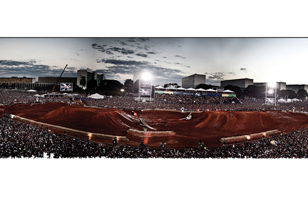 600 camiones de tierra fueron necesarios para construir la “Esplanada dos Ministerios“ (en el corazón de Brasilia) para dar nacimiento al circuito que nucleó a los mejores atletas del FMX mundial. Las magestuosas rampas (kickers) instaladas y los 100.000 espectadores decretaron al «Red Bull X-Fighters» como un verdadero exitazo! El triunfo fue para Adams, el rider californiano de 27 años que derrotó en la ronda final al también californiano Maddison.